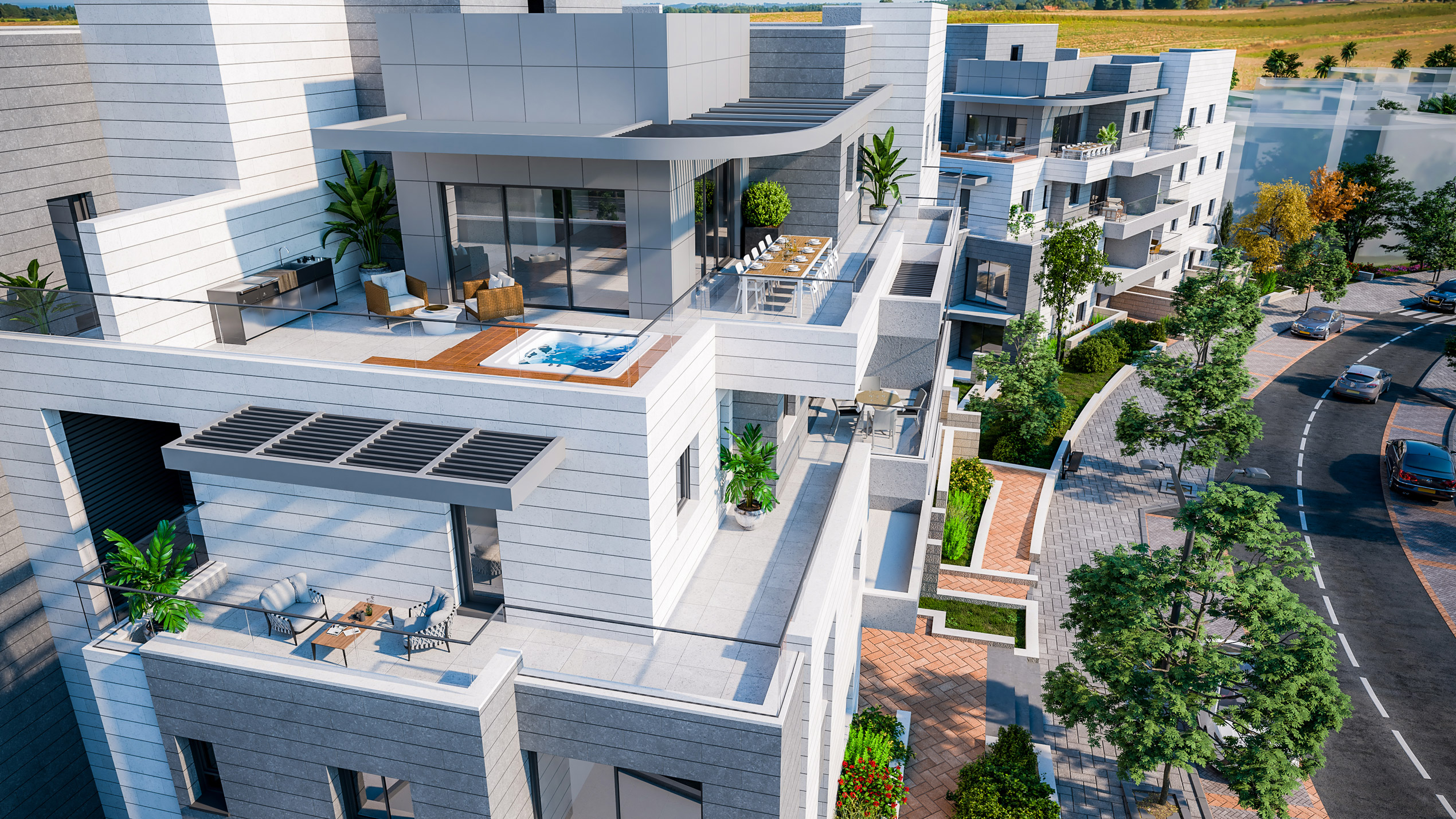 בנוסף במתחם 23 וילות בשתי קומות, עם גינות ומרפסות.