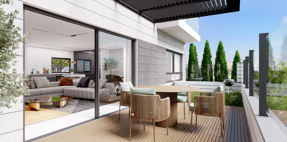 דירות גדולות ומרווחות בעיצוב אדריכלי מוקפד מרפסות שמש גדולות ומרווחות עם מעקה זכוכית -2חניות הכנה לעמדת טעינה לרכב חשמלי מעטפת תרמית לשמירת יעילות אנרגטית מחסן לכל דירה נקודת מים וגז בגינה