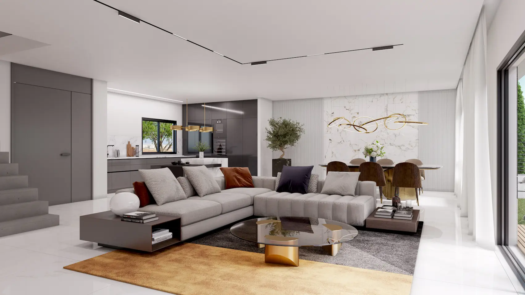 מערכת מיזוג אויר מרכזי אביזרי חשמל יוקרתיים מסוג גוויס נקודת טלפון וכבלים בכל חדר חימום מים עם מערכת סולרית ודוד חשמל מערכת סינון בממ"ד חשמל חכם בכל דירה שקע קוברה בסלון